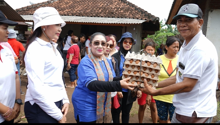 Ny.Tjok Ace yang turut didampingi oleh Istri Bupati Jembrana Ny.Candrawati Tamba dan Ketua GOW Jembrana Ny. Inda Patriana Krisna turun langsung melihat kondisi rumah warga yang terdampak banjir bandang yang terjadi beberapa waktu lalu seraya menyerahkan sejumlah bantuan berupa perlengkapan MCK, keperluan balita, selimut, pakaian layak pakai, sprei serta sembako.
